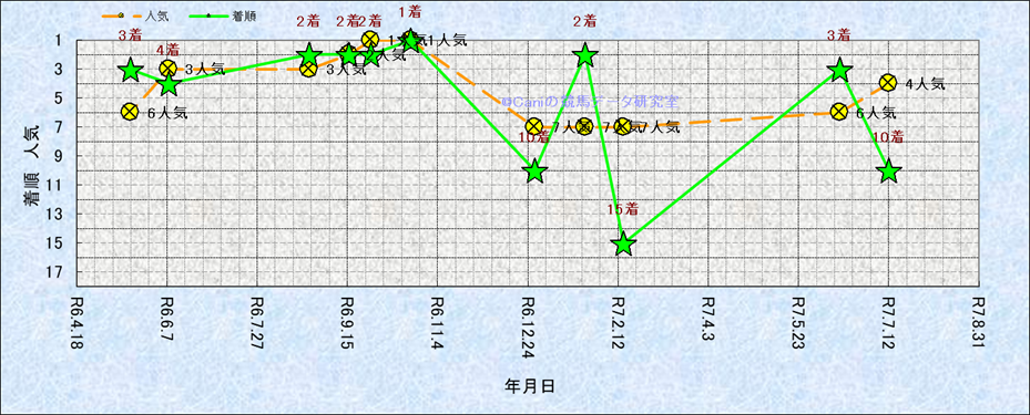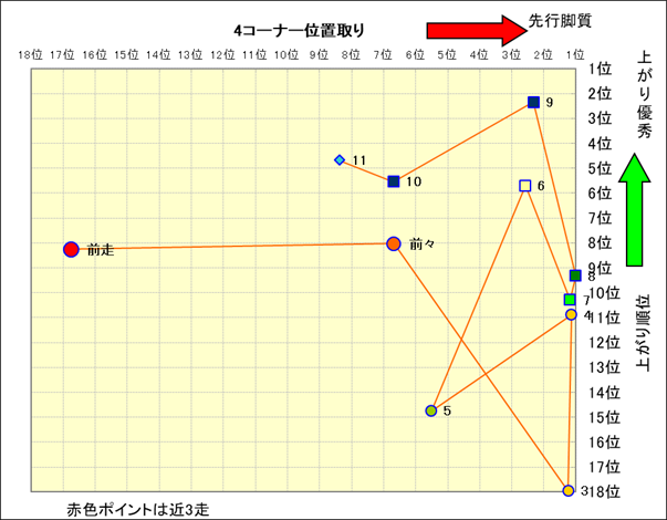 近走における4コーナーでの位置取りと上がり順位(頭数補正後) |