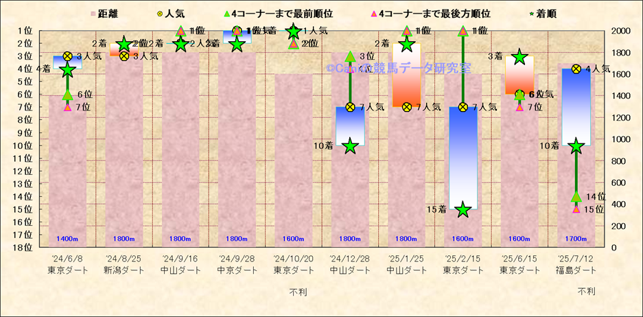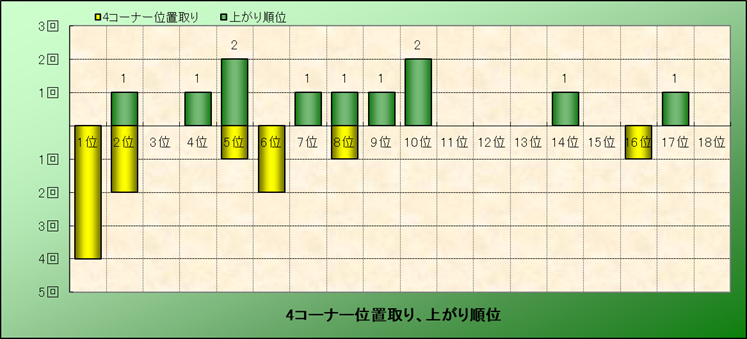 脚質解析 近20レースの4コーナーでの位置取りと上がり順位(頭数補正後) |