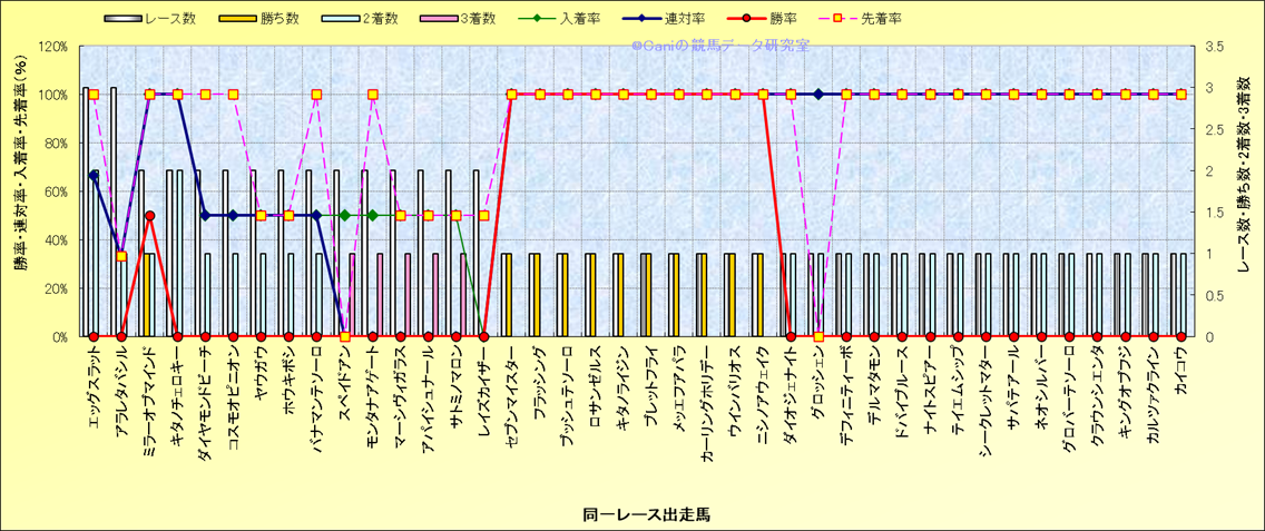 ライバル(相性)解析 同一レースに下記馬が出走した場合の成績とその馬に先着する先着率 |