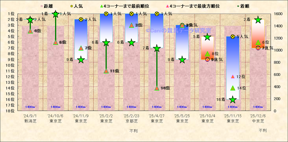 近10走 人気−着順-位置取りの推移 |