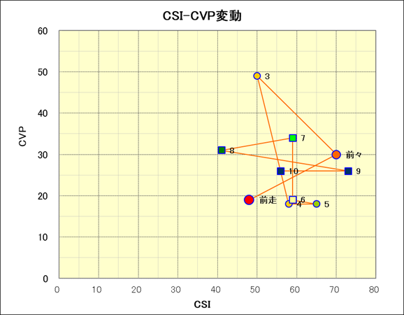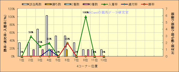 近走における4コーナーでの位置取りと上がり順位(頭数補正後) |
