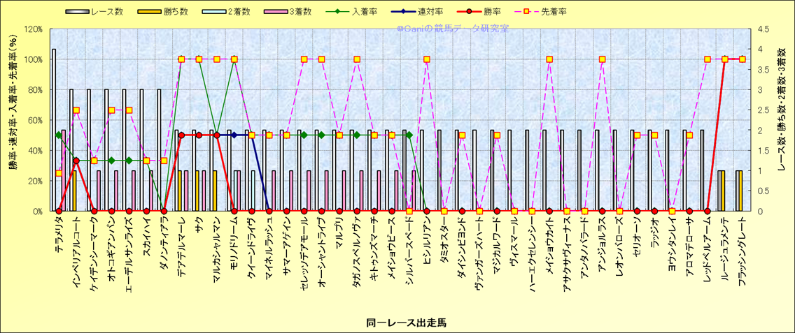 ライバル(相性)解析 同一レースに下記馬が出走した場合の成績とその馬に先着する先着率 |