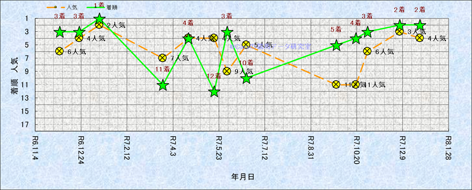 脚質解析 近20レースの4コーナーでの位置取りと上がり順位(頭数補正後) |