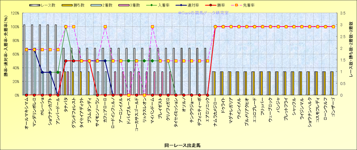 ライバル(相性)解析 同一レースに下記馬が出走した場合の成績とその馬に先着する先着率 |