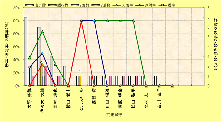 ライバル(相性)解析 同一レースに下記馬が出走した場合の成績とその馬に先着する先着率 |