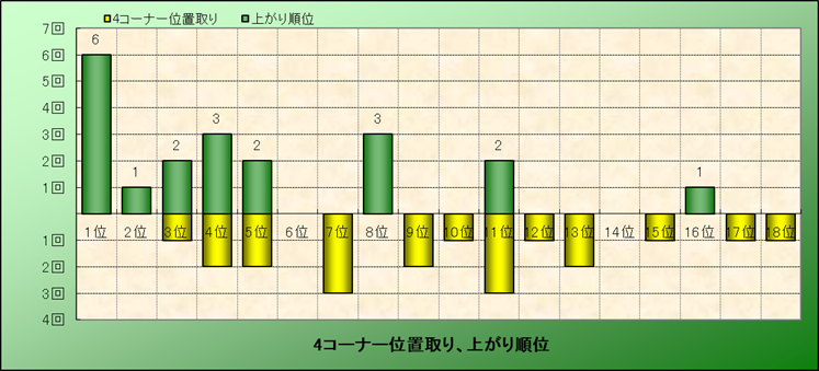 脚質解析 近20レースの4コーナーでの位置取りと上がり順位(頭数補正後) |