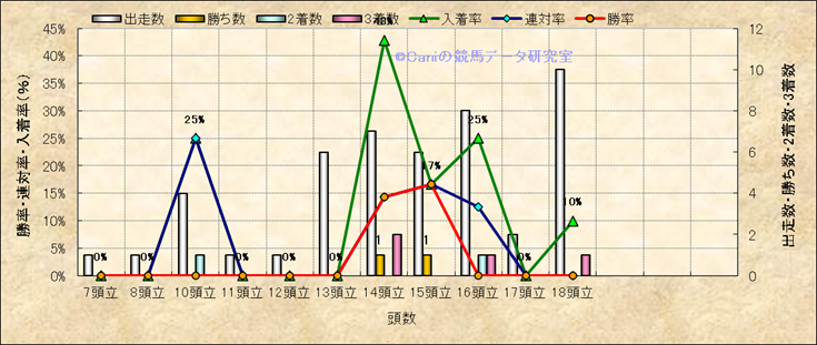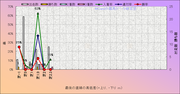 コース、最後の直線の高低差別成績(平地) |
