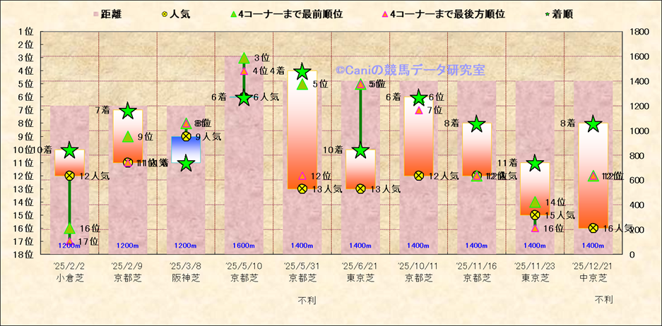 近10走 人気−着順-位置取りの推移 |