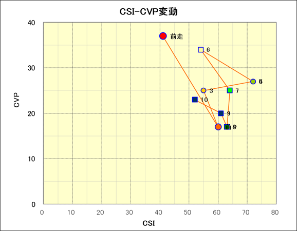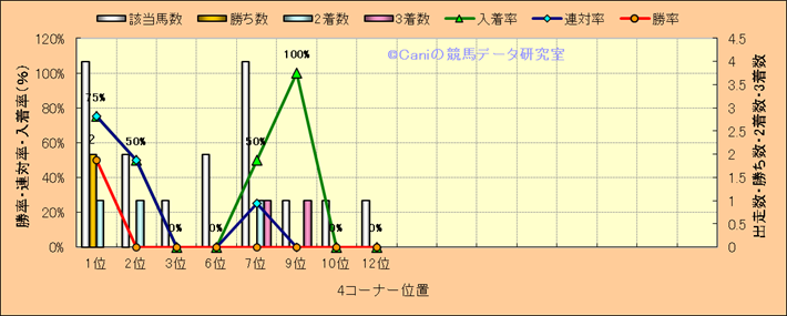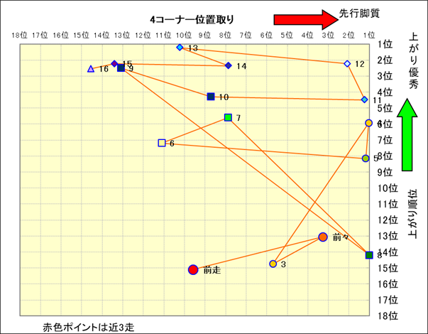 近走における4コーナーでの位置取りと上がり順位(頭数補正後) |
