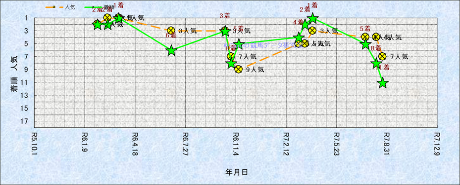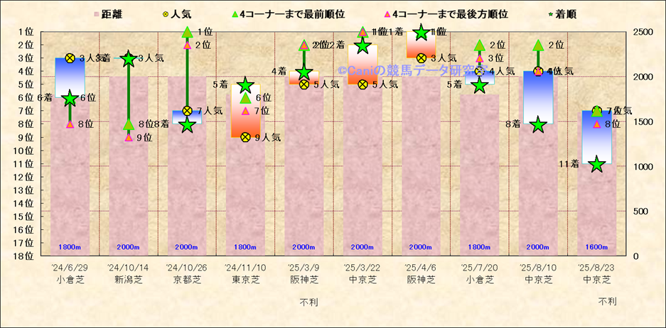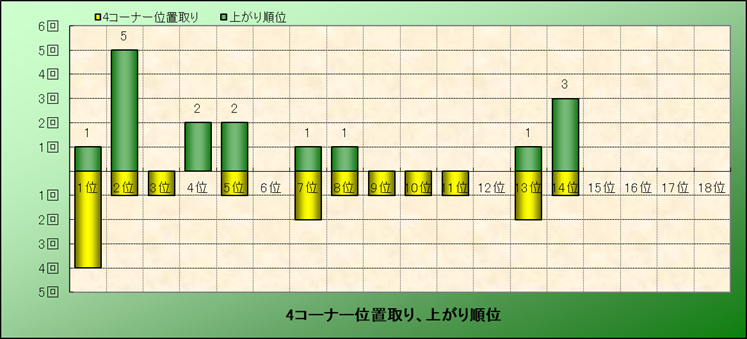 脚質解析 近20レースの4コーナーでの位置取りと上がり順位(頭数補正後) |
