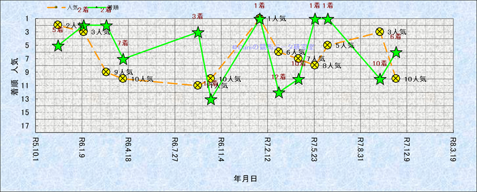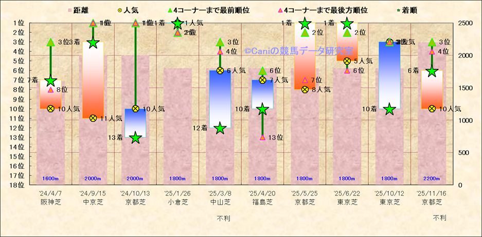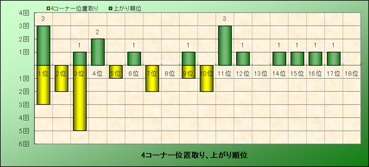 脚質解析 近20レースの4コーナーでの位置取りと上がり順位(頭数補正後) |