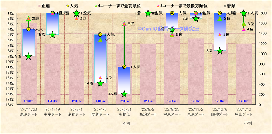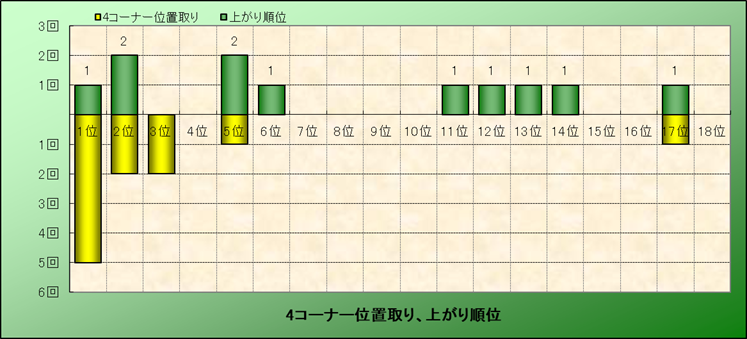 脚質解析 近20レースの4コーナーでの位置取りと上がり順位(頭数補正後) |