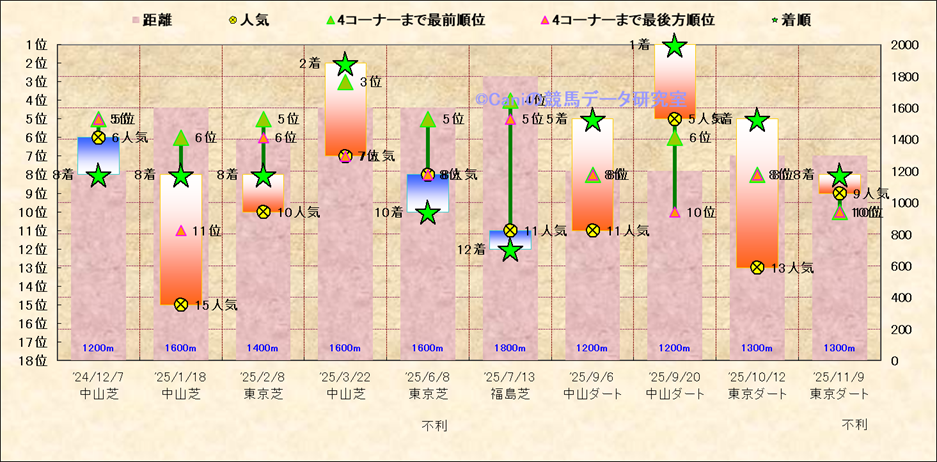 近10走 人気−着順-位置取りの推移 |