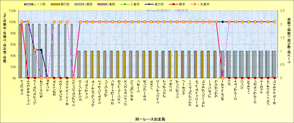 ライバル(相性)解析 同一レースに下記馬が出走した場合の成績とその馬に先着する先着率 |