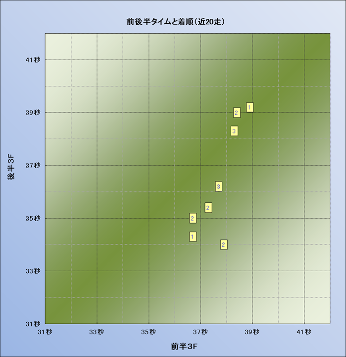 脚質解析 近20レースの4コーナーでの位置取りと上がり順位(頭数補正後) |