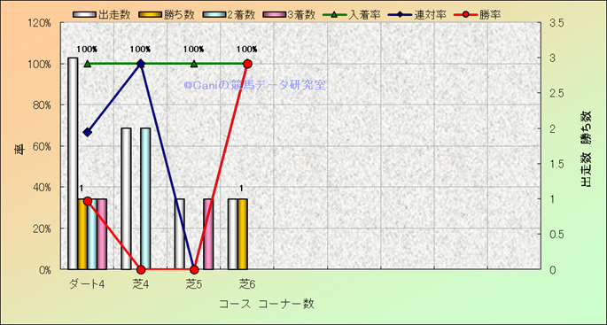 コース、コーナー数別成績(平地) |
