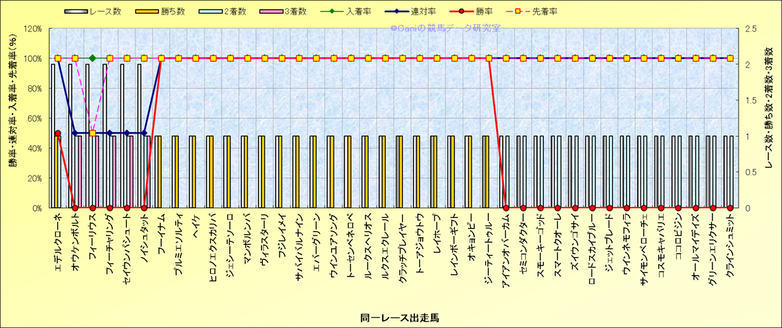 ライバル(相性)解析 同一レースに下記馬が出走した場合の成績とその馬に先着する先着率 |