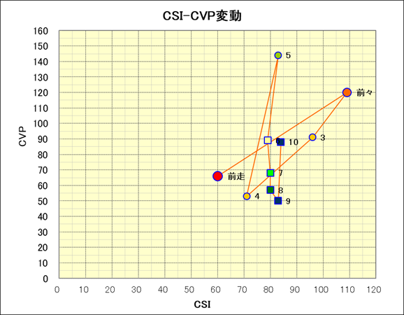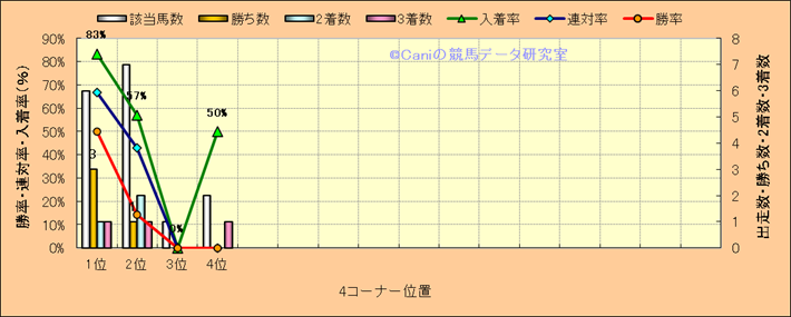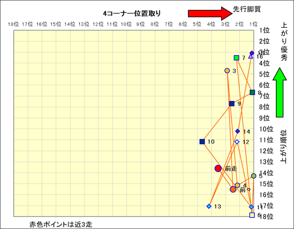 近走における4コーナーでの位置取りと上がり順位(頭数補正後) |