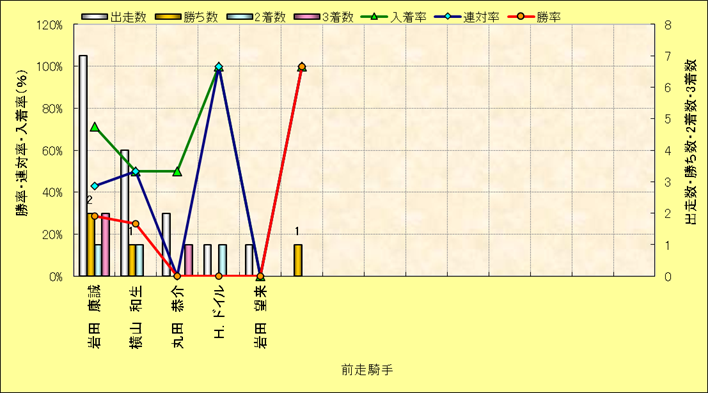 ライバル(相性)解析 同一レースに下記馬が出走した場合の成績とその馬に先着する先着率 |