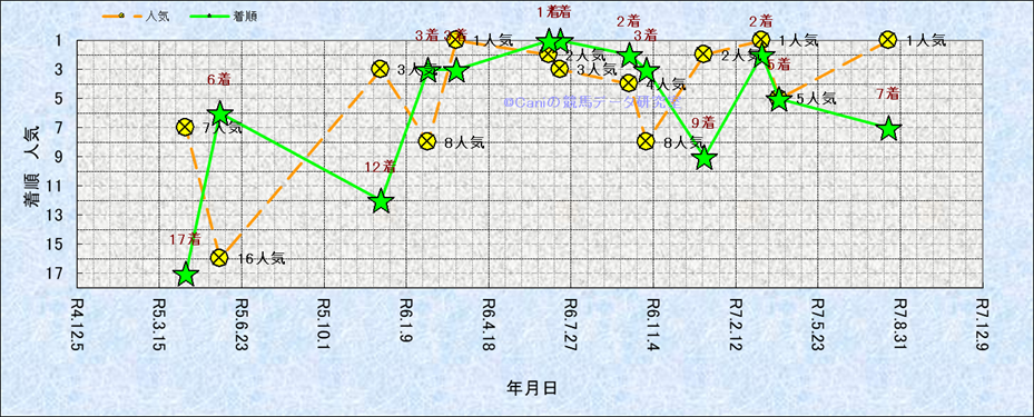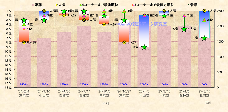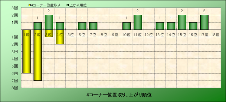 脚質解析 近20レースの4コーナーでの位置取りと上がり順位(頭数補正後) |