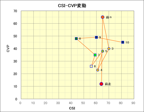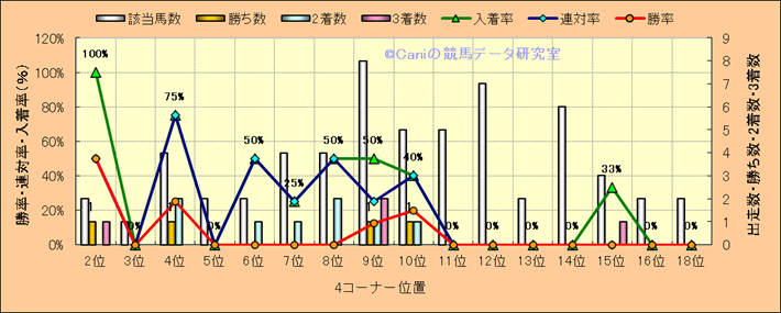 近走における4コーナーでの位置取りと上がり順位(頭数補正後) |