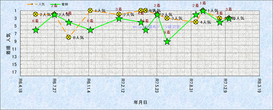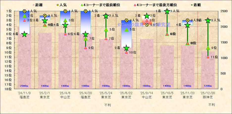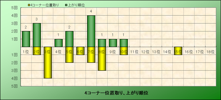 脚質解析 近20レースの4コーナーでの位置取りと上がり順位(頭数補正後) |