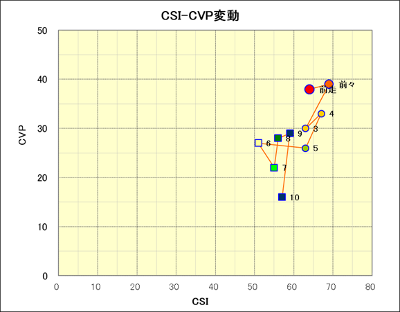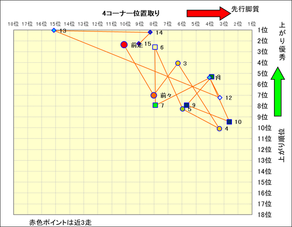 近走における4コーナーでの位置取りと上がり順位(頭数補正後) |