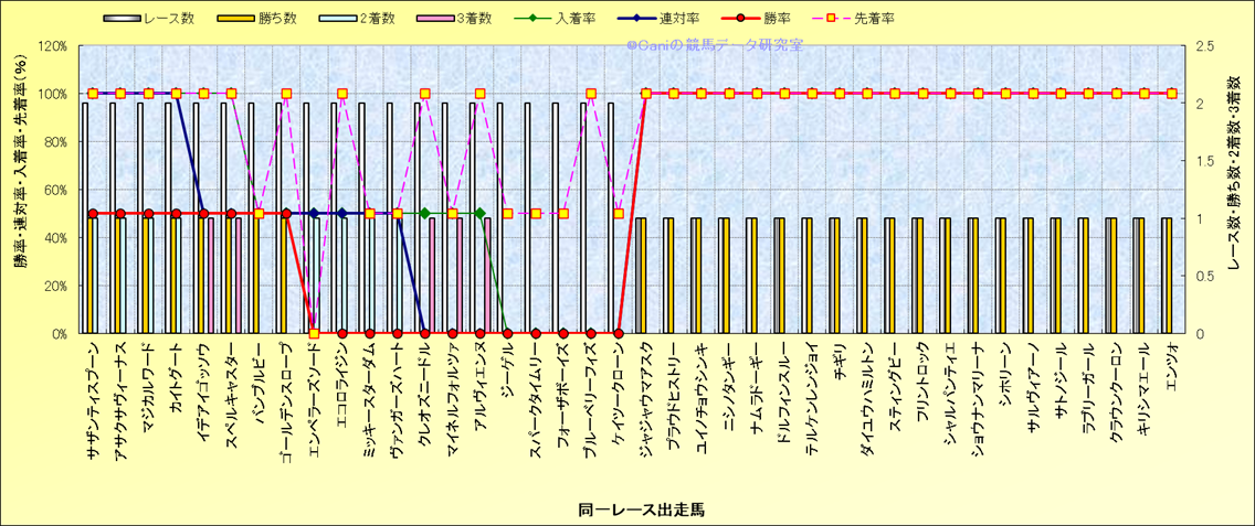 ライバル(相性)解析 同一レースに下記馬が出走した場合の成績とその馬に先着する先着率 |