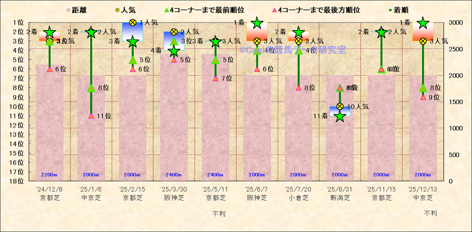 近10走 人気−着順-位置取りの推移 |