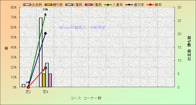コース、コーナー数別成績(平地) |