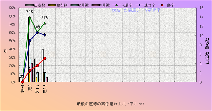 コース、最後の直線の高低差別成績(平地) |