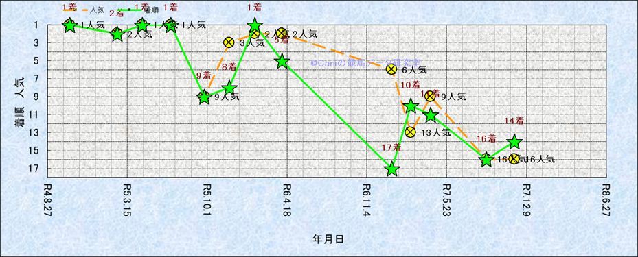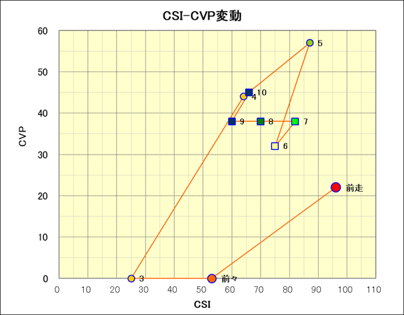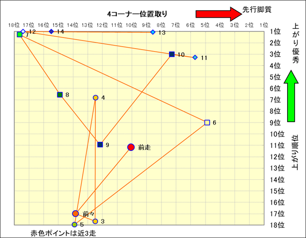 近走における4コーナーでの位置取りと上がり順位(頭数補正後) |