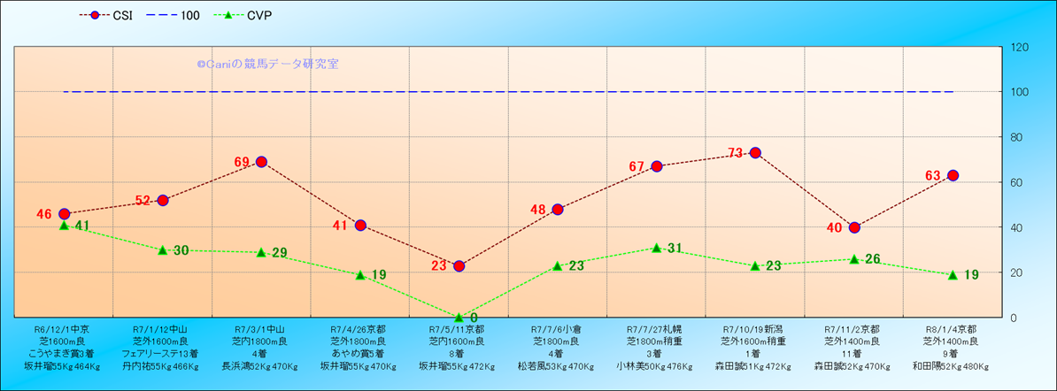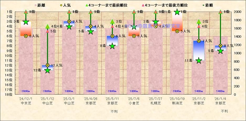 近10走 人気−着順-位置取りの推移 |