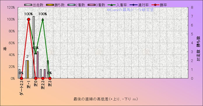 コース、最後の直線の高低差別成績(平地) |