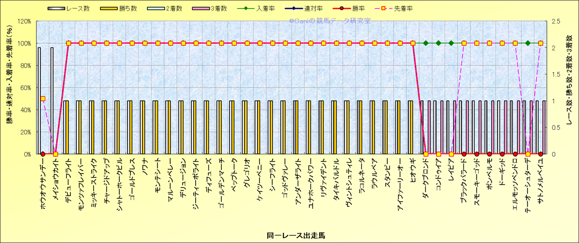 ライバル(相性)解析 同一レースに下記馬が出走した場合の成績とその馬に先着する先着率 |