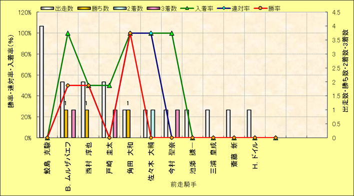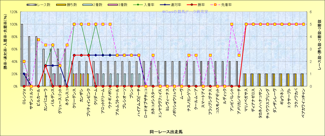 ライバル(相性)解析 同一レースに下記馬が出走した場合の成績とその馬に先着する先着率 |