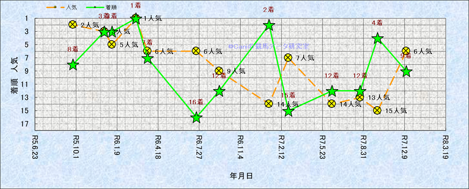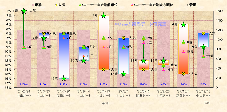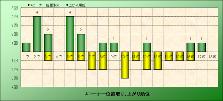 脚質解析 近20レースの4コーナーでの位置取りと上がり順位(頭数補正後) |