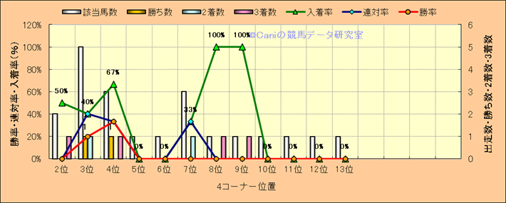 近走における4コーナーでの位置取りと上がり順位(頭数補正後) |