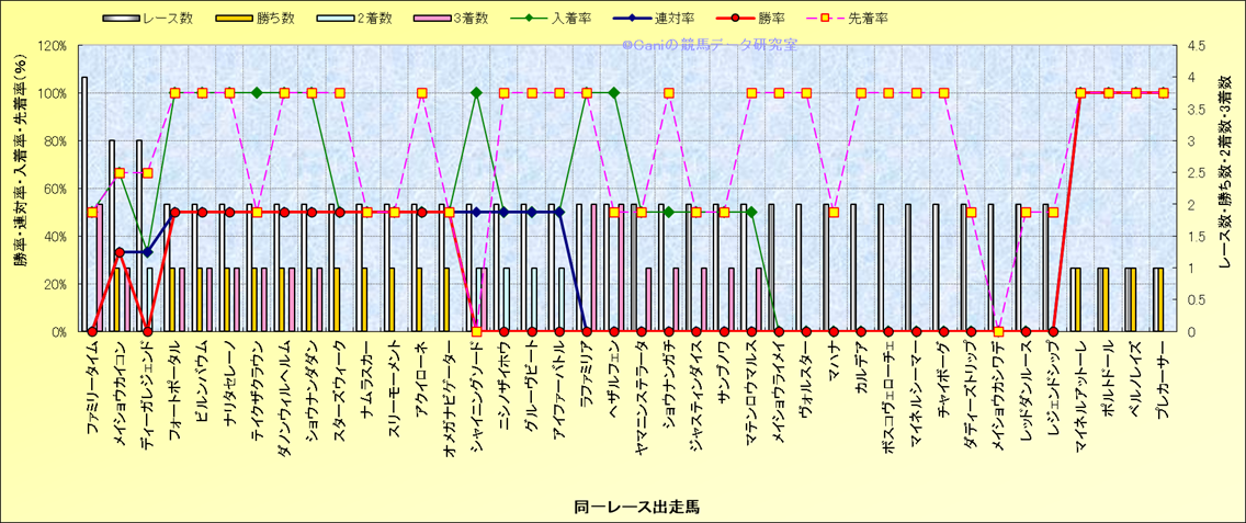 ライバル(相性)解析 同一レースに下記馬が出走した場合の成績とその馬に先着する先着率 |