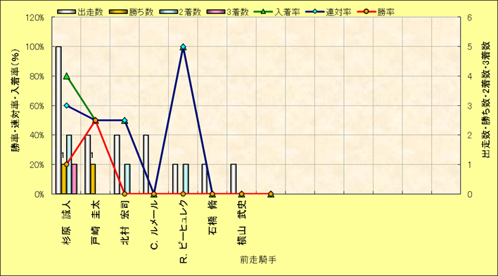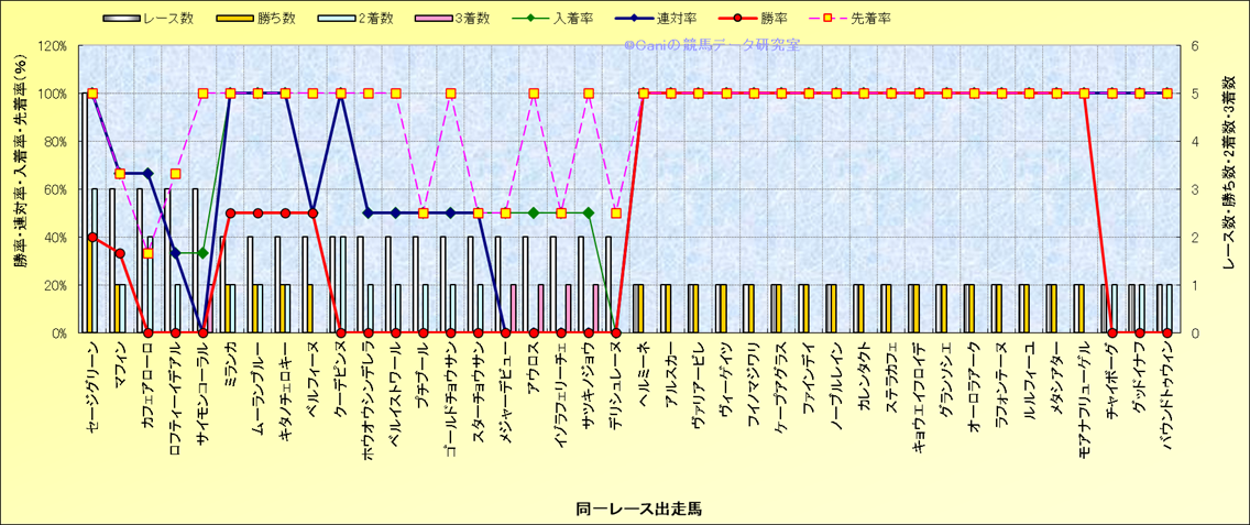 ライバル(相性)解析 同一レースに下記馬が出走した場合の成績とその馬に先着する先着率 |
