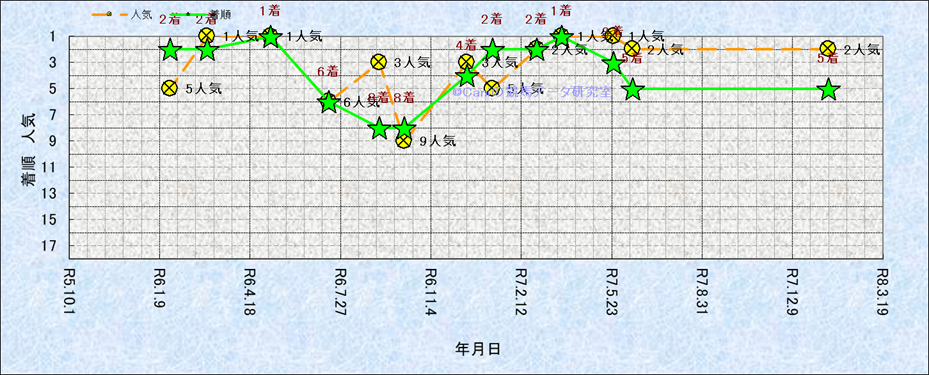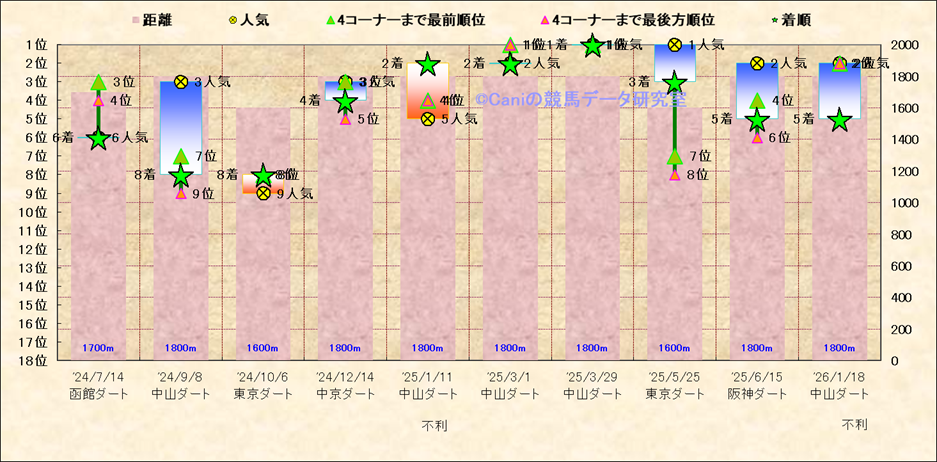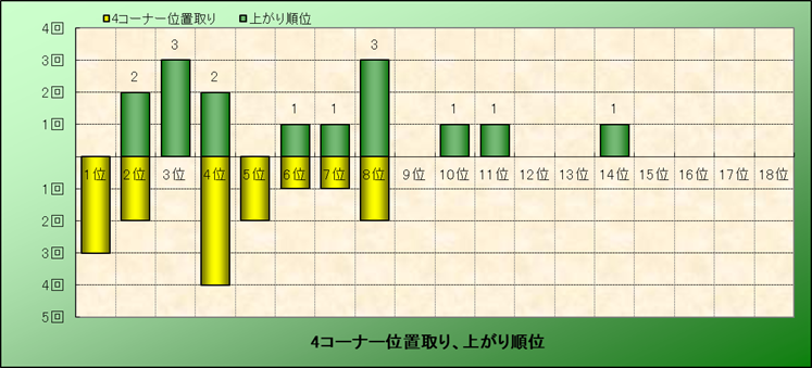 脚質解析 近20レースの4コーナーでの位置取りと上がり順位(頭数補正後) |