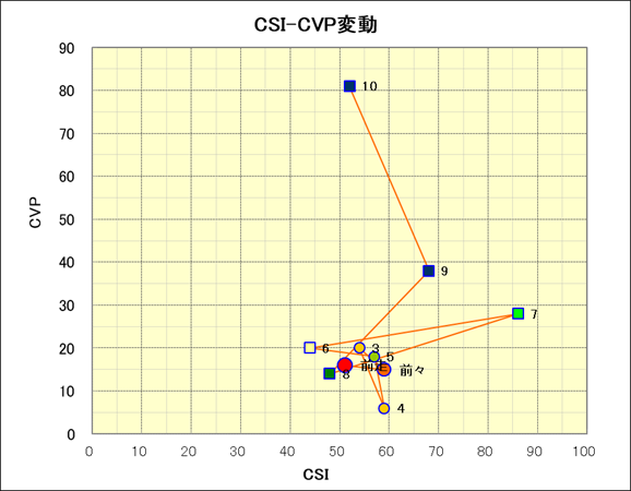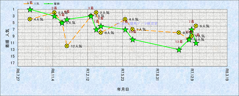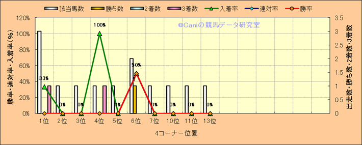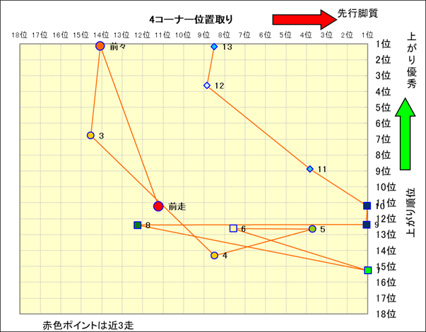 近走における4コーナーでの位置取りと上がり順位(頭数補正後) |