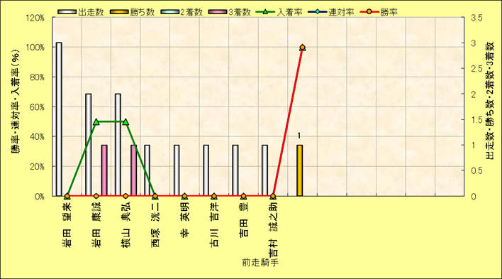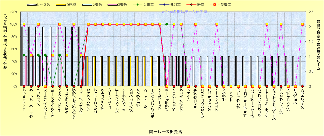 ライバル(相性)解析 同一レースに下記馬が出走した場合の成績とその馬に先着する先着率 |