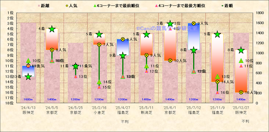 近10走 人気−着順-位置取りの推移 |