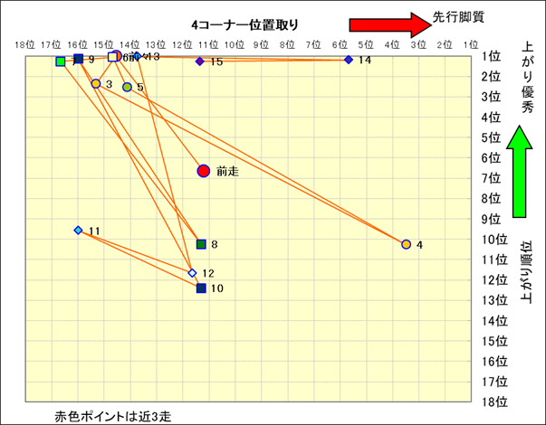 近走における4コーナーでの位置取りと上がり順位(頭数補正後) |