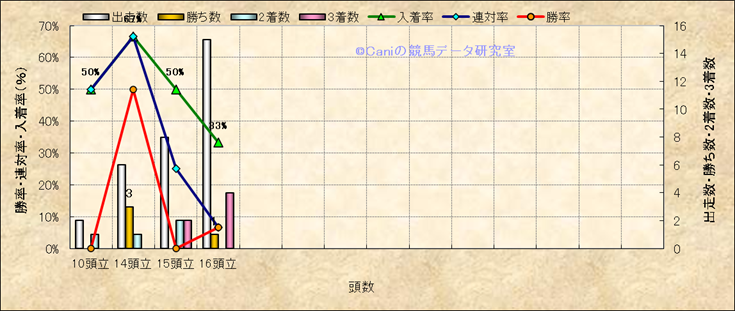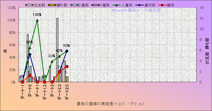 コース、最後の直線の高低差別成績(平地) |