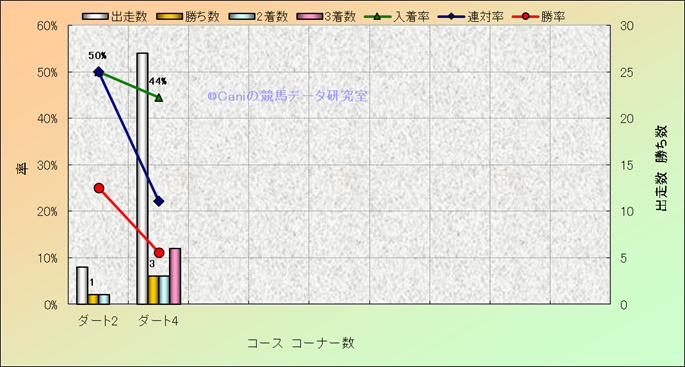 コース、コーナー数別成績(平地) |