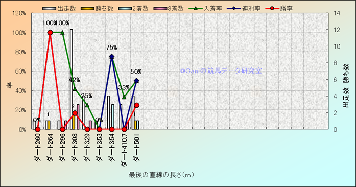 コース、最後の直線の長さ別成績(平地) |