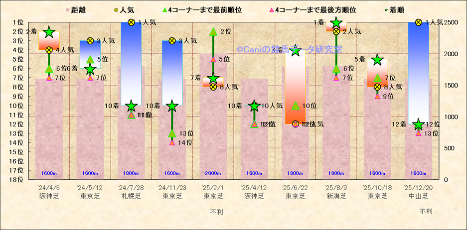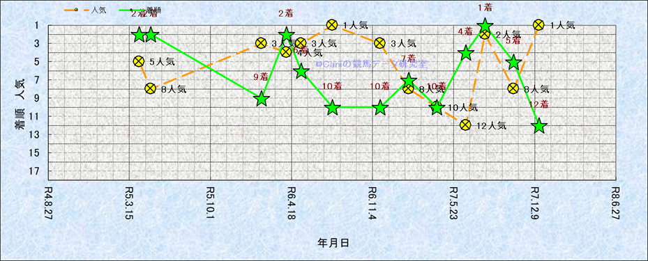 近10走 人気−着順-位置取りの推移 |