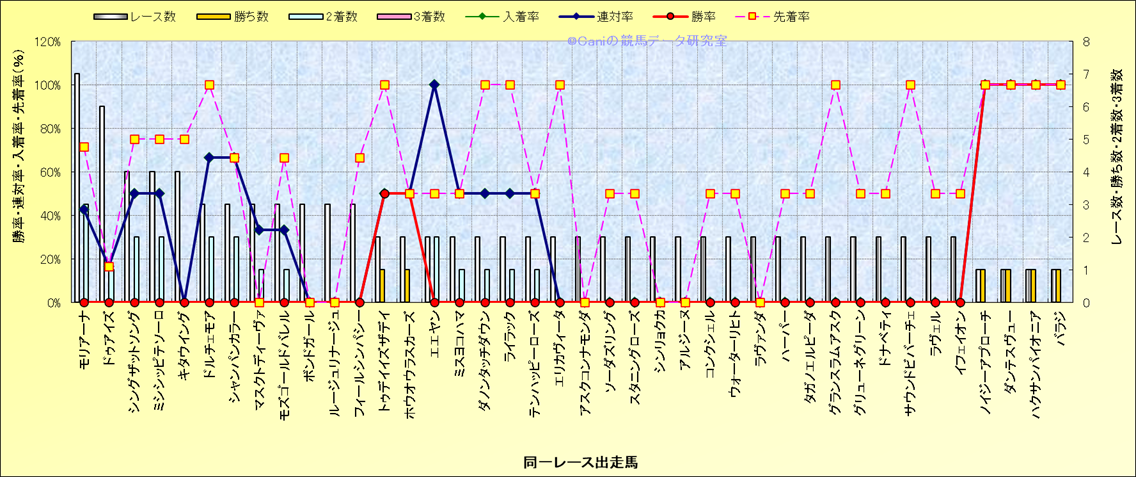 ライバル(相性)解析 同一レースに下記馬が出走した場合の成績とその馬に先着する先着率 |